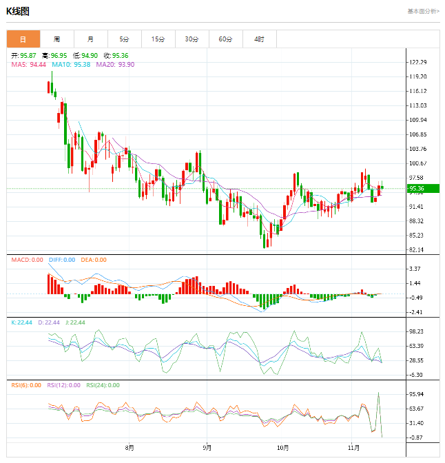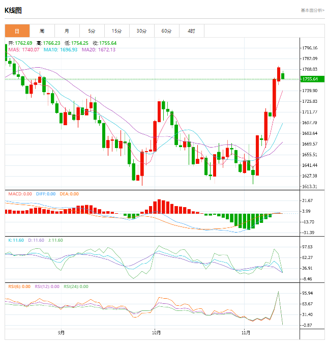 今日周一晚间,原油报95.38/95.40,黄金报1755.54/1755.84。周一(11月14日)亚洲时段,现货黄金低开后窄幅震荡,目前交投于1763.05美元/盎司,民主党基本锁定了对参议院的控制权,给美元提供支撑,金价因而小幅承压,另外,美联储理事沃勒周日发表了偏鹰派讲话,令黄金多头有所顾忌。