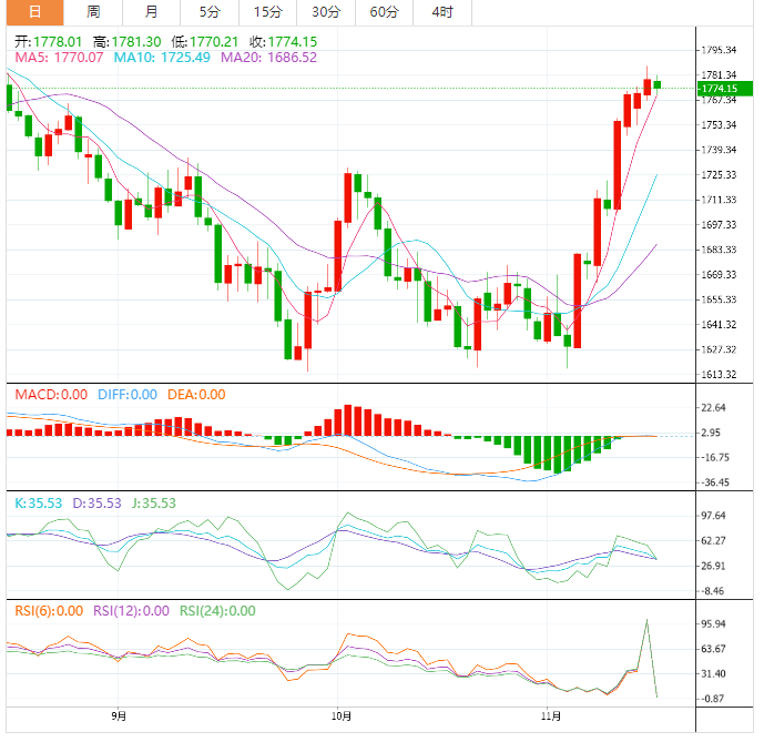 黄金价格现在显示出一些轻微的看跌倾向,为了向关键支撑位1765.00的潜在测试前进,价格需要在该水平上方盘整,以保持看涨趋势情景的活跃,并在图中出现的看涨通道内组织,下一个主要目标位位于1800.00。
