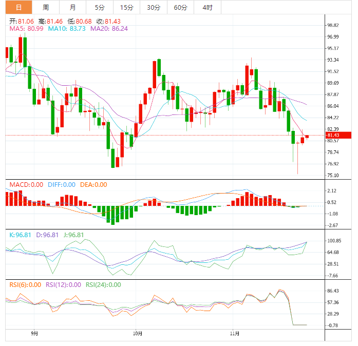 美原油窄幅震荡,目前交投于81.04美元/桶附近,疫情担忧仍然令油价承压,但API原油库存大幅下降,暗示市场供应紧张,给油价提供支撑,而且周二阿联酋、科威特、伊拉克和阿尔及利亚强化了的OPEC+没有考虑提高石油产量的打算,多头机会有所增加。