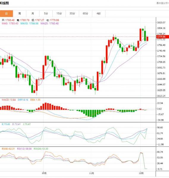 今日周二晚间,原油报81.40/81.42,黄金报1776.99/1777.30。周二(12月6日),现货黄金小幅反弹,美元指数回踩105关口。隔夜公布的美国强劲的服务业数据激发了人们对美联储升息至高于近期预测水平的可能,金价创近两个半月最大单日跌幅。通胀接力棒已从商品领域转向服务领域,表明经济中的整体价格压力可能需要一段时间才能消退。至少在美联储12月政策会议结束之前,黄金上行势头似乎受限。