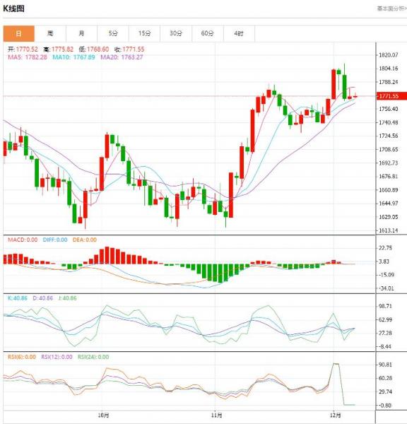 今日周三晚间,原油报79.25/79.27,黄金报1773.38/1773.68。周二(12月6日),周三(12月7日),国际金价窄幅震荡,波动不足7美元,投资者继续研判美联储如何调整未来加息节奏。美国11月服务业和劳动力需求显示出经济强劲,通胀面临潜在反弹的新信号打压市场情绪。美联储政策会议前,黄金下跌风险高于上行风险。