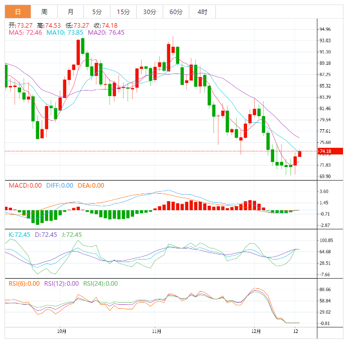 美原油有震荡上涨,一度上涨逾1%,创三个交易日新高至74.30美元/桶,因市场预计美联储将放缓加息步伐,市场风险偏好回升,提振大宗商品,而且美国供油的一条关键管道仍然关闭,加剧了对美国供应可能趋紧的担忧,此外,中国防控疫情防治限制,市场预计将促进原油需求,市场看涨情绪有所回升。此外,油价周一守住了70整数关口,逢低买盘涌入也支撑油价。