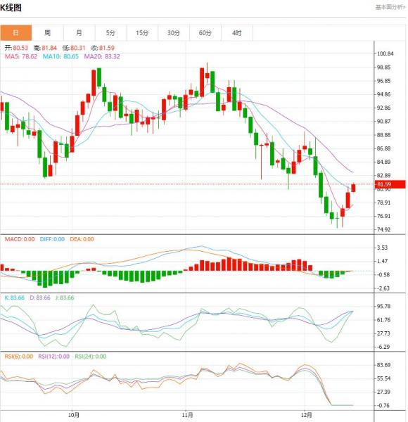今日周三晚间,原油报81.45/81.47。黄金报1806.98/1807.28。周三(12月14日)亚洲时段,现货黄金窄幅震荡,目前交投于1810美元/盎司附近,在隔夜美国11月CPI数据弱于市场预期和前值后,市场普遍强化了对美联储放缓加息步伐的预期,金价大涨收复了200日均线和1800关口并顶破了8月份高点1807附近阻力,短线看涨信号有所增加。