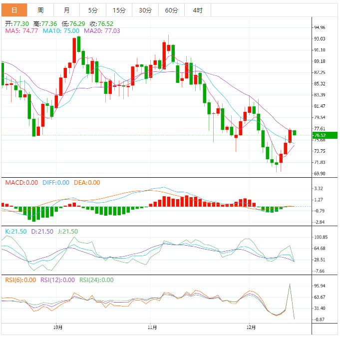 美原油震荡微跌,目前交投于76.61美元/桶附近,美联储鹰派利率决议后美元温和反弹,对油价产生拖累。不过,原油市场基本面依然偏向多头,一方面,Keystone管道仍未完全恢复,令供给受阻,另一方面,中国放松疫情防控措施后,需求预期明显改善。