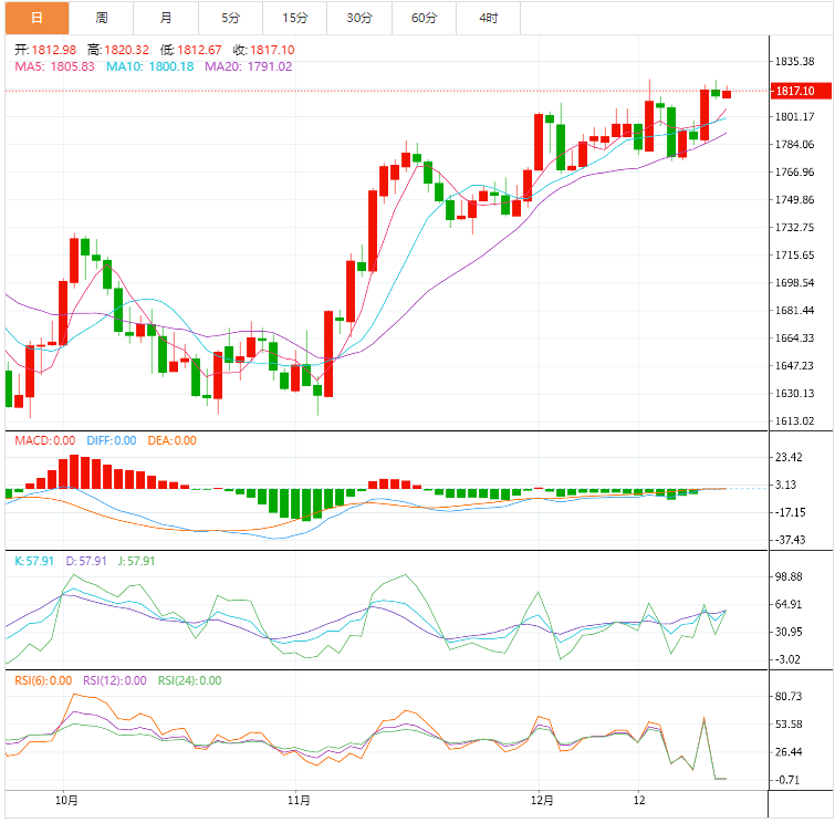 美原油窄幅震荡,目前交投于78.50美元/桶,守住了隔夜大部分涨幅。周三油价上涨逾3%,因美国原油、取暖油和航空燃料库存紧张,与此同时美国遭遇寒流侵袭, 且假日季节出行人数也将激增。