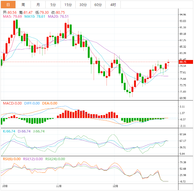 美原油窄幅震荡,目前交投于80.48美元/桶附近,虽然对亚洲疫情的担忧和IMF主席关于全球经济前景艰难的言论,油价一度早些时候一度下跌逾1%至79.30美元/桶,但俄乌地缘局势紧张,而且欧盟对俄罗斯的石油禁令正在生效,欧盟停止了90%的俄罗斯石油进口,对欧洲能源危机的担忧仍给油价提供支撑。