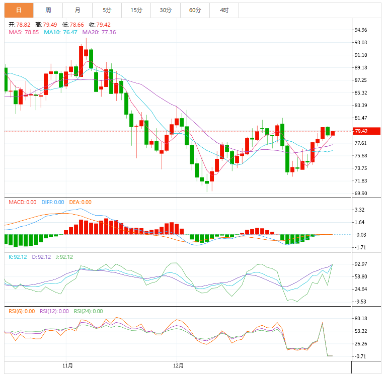 美原油震荡微涨,目前交投于79.15美元/桶附近,因为中国GDP等数据表现好于预期,给油价提供支撑,不过,市场对全球经济衰退的担忧挥之不去,令原油多头仍有所顾忌。