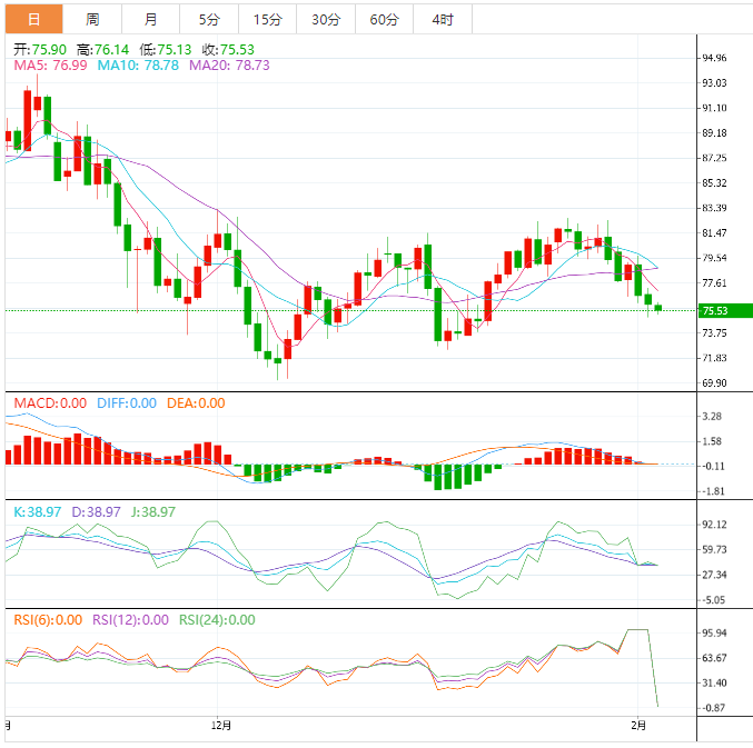 美原油震荡微跌,目前交投于75.75美元/桶附近,之前EIA原油库存连续第六周增加,周四美元指数大幅反弹,令油价承压,不过,市场期待中国燃料需求强劲复苏的更多信号,以抵消其他主要经济体即将出现的需求下滑。