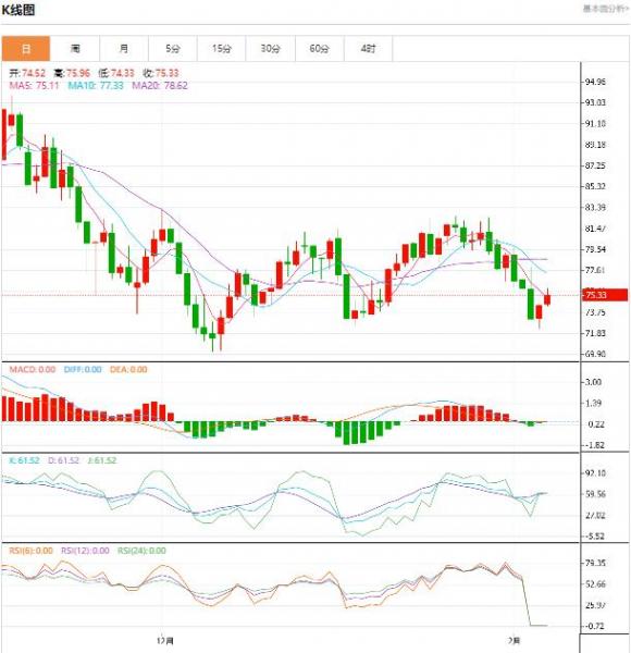 今日晚间周二,原油报75.54/75.58。黄金报1868.87/1869.19。星期二(二月七日)亚洲时段,美国原油价格波动,一度触及每桶75.32美元的两日高点。油价在隔夜反弹,此前守住逾一个半月低点附近的支撑位,一些空头获利了结和一些逢低吸纳的投资者再度进场也提供支撑。