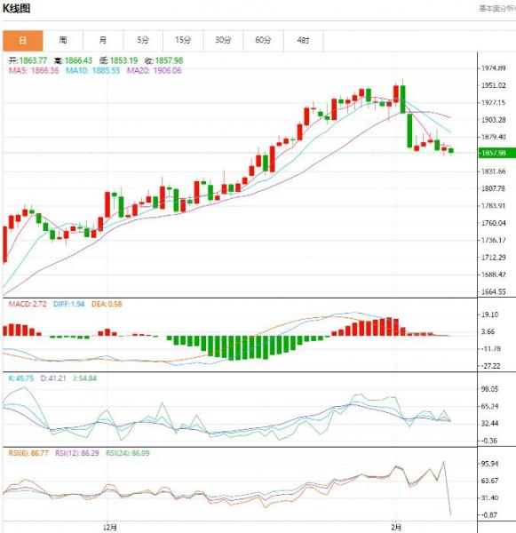 今日晚间周一,原油报78.97/79.01。黄金报1857.88/1858.20。星期一(二月十三日)美国原油价格在亚洲时段交易中回落,市场对美国通胀回升和美元反弹的预期令油价承压;与此同时,市场关注的是亚洲和美国炼油厂大修带来的短期需求忧虑。此外,美国原油钻井数据激增也让多头有所迟疑。