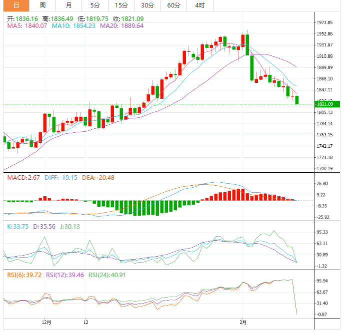 因此,预计熊市趋势将在未来一段时间内继续主导,注意到突破1844.00可能会推动价格实现盘中涨幅,并在任何新的下跌尝试之前测试1878.80水平。