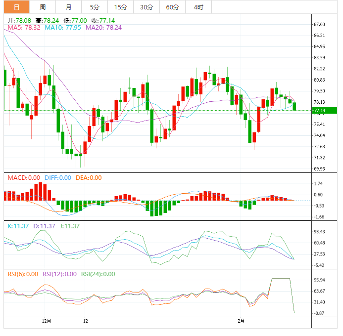 美原油震荡走弱,目前交投于77.50附近,随着美国经济数据表现强劲,美联储官员多次发表鹰派讲话,市场提升了美联储的终端利率预期,市场风险偏好明显降温,全球股市普遍承压,美元持续走高,对油价形成打压。沙特能源大臣阿卜杜勒阿齐兹亲王表示,他对中国的需求预测仍持谨慎态度。这也打击多头士气。
