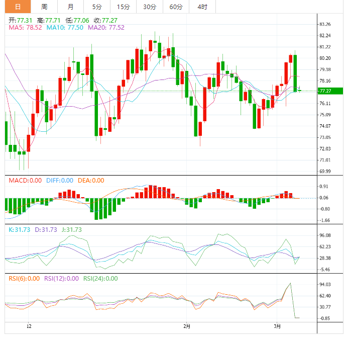 美原油震荡微涨,目前交投于77.50美元/桶附近,尽管API原油库存意外下降,给油价提供支撑,但隔夜美联储主席鹰派的讲话继续帮助美元指数冲高,对经济衰退的担忧也有所升温,令油价继续承压。虽然隔夜大跌后,油价存在震荡反弹调整的机会,但预计强势美元压制下,油价短线仍有进一步下行风险。