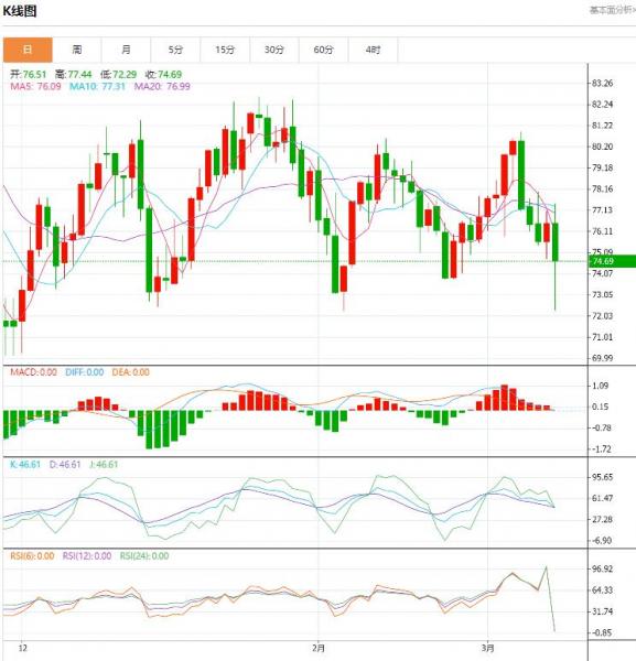 今日晚间周一,原油报74.75/74.79。黄金报1904.29/1904.63。上星期五(3月10日)油价上涨逾百分之一,原因是美国就业数据强劲,同时美国私下敦促一些大宗商品交易商打消对价格受限的俄罗斯石油运输的担忧,这意味着或会有更多的俄石油进入市场。
