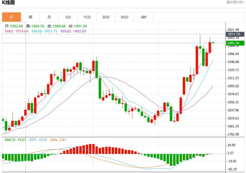 周五欧市盘中,现货黄金报1991.59,跌幅0.07%。