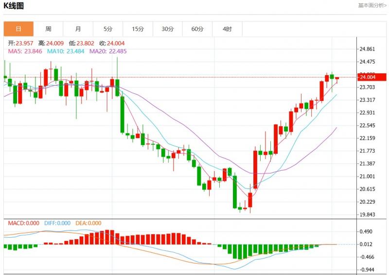 周二欧市盘中,现货白银报23.985,涨幅0.17%。