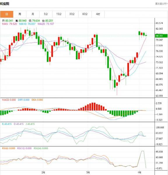 今日晚间周五,原油报80.249/80.289。黄金报2007.04/2007.35。星期四(四月六日)亚欧时段,美原油窄幅波动。之前美国疲弱的就业空缺数据表明,经济状况降温可能会打击需求。但EIA原油库存降幅大于预期,且沙特阿拉伯连续第三个月向亚洲买家提高其旗舰原油价格,为油价提供支撑。