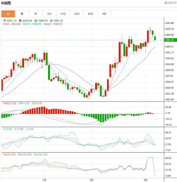 周一(4月10日),国际金价一度跌约1%,重回2000美元关口下方。此前公布的美国3月非农就业数据显示劳动力市场吃紧,并提高了美联储5月再次加息的预期。但金价技术上看依然看涨,可能在1991美元附近站稳脚跟。