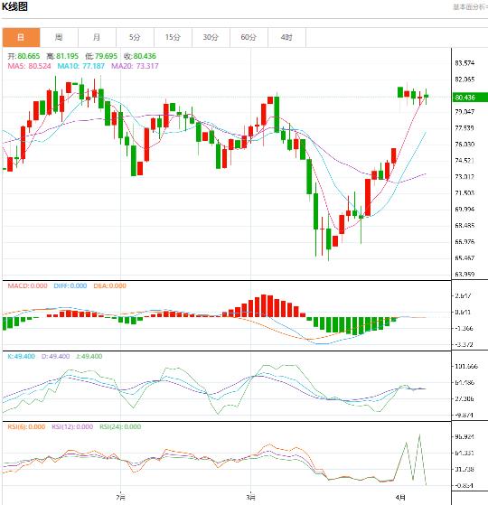 今日晚间周一,原油报80.436/80.476。黄金报1992.06/1992.37。星期一(四月十日),在亚欧期间,美国原油在窄幅波动。上个星期五(四月七日),美国3月非农数据反映出美国劳动力市场依然紧张,改善了原油需求前景。