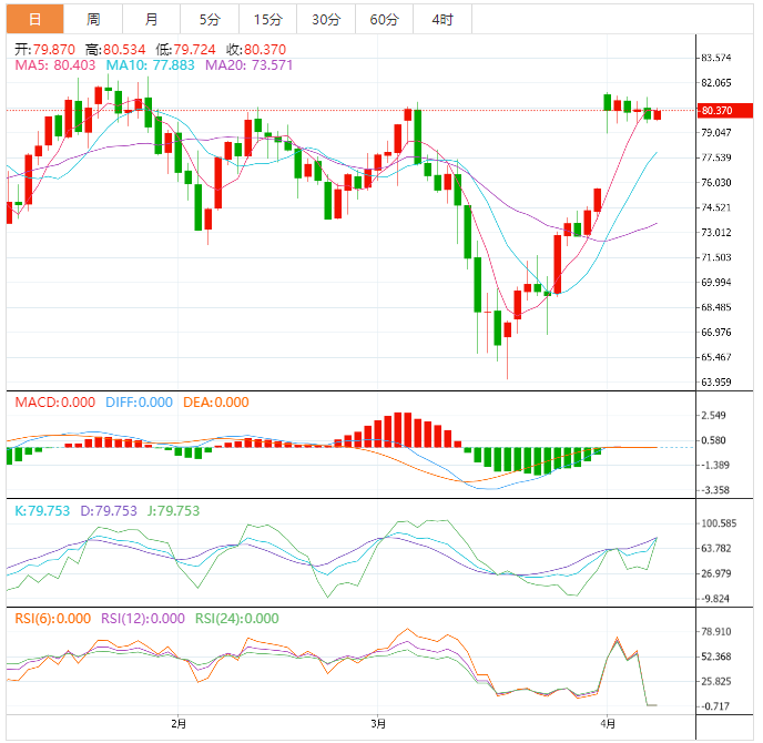 美原油小幅上涨,目前交投于80.34美元/桶,一方面美元指数回吐隔夜大部分涨幅,给油价提供支撑,另一方面市场预期亚洲大国出台经济刺激措施,也提振市场信心,此外,亚洲其他地区的需求稳健及美国原油库存下降,也给油价提供支撑。油价在相对高位已经调整近一周时间,后市重拾上周涨势的可能性有所增加。