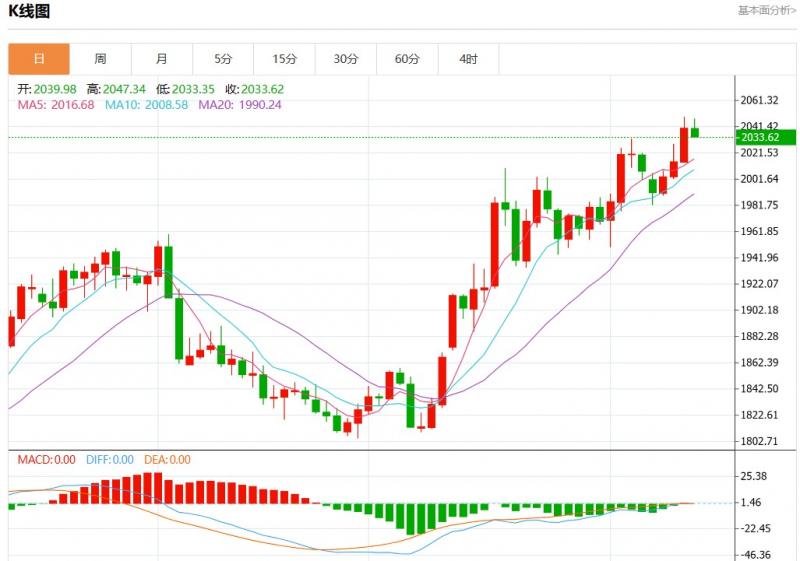 周五欧市盘中,现货黄金报2033.75,跌幅0.32%。