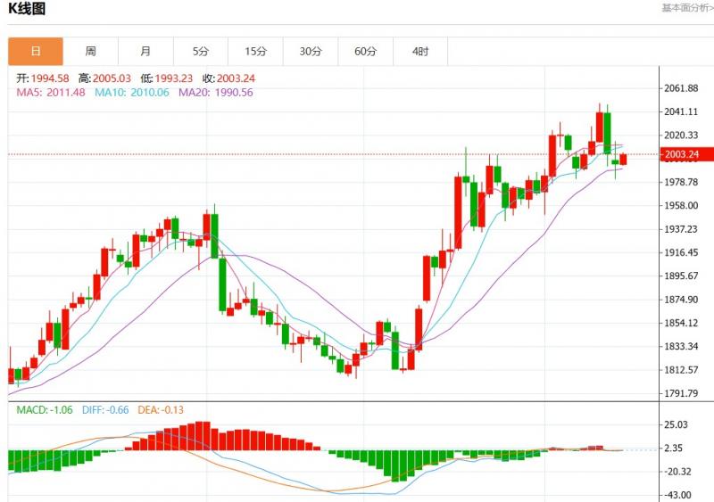 周二欧市盘中,现货黄金报2003.27,涨幅0.42%。
