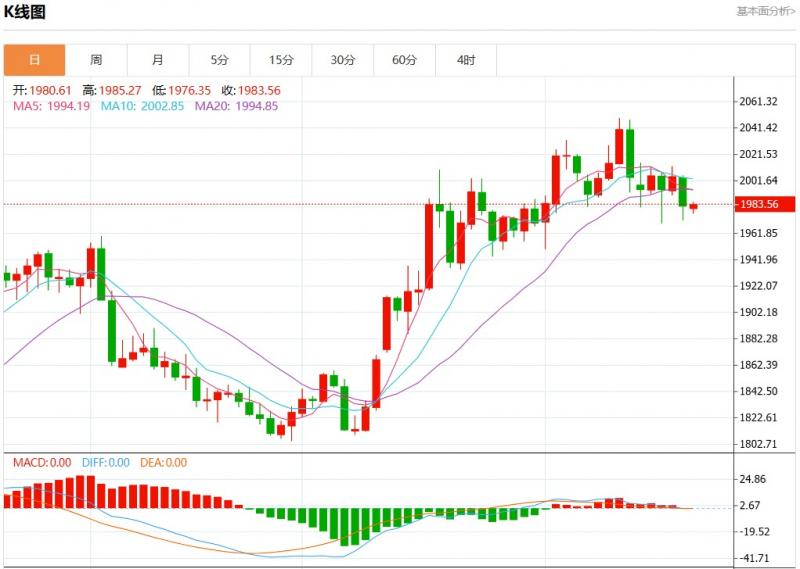 周一欧市盘中,现货黄金报1983.13,涨幅0.05%。