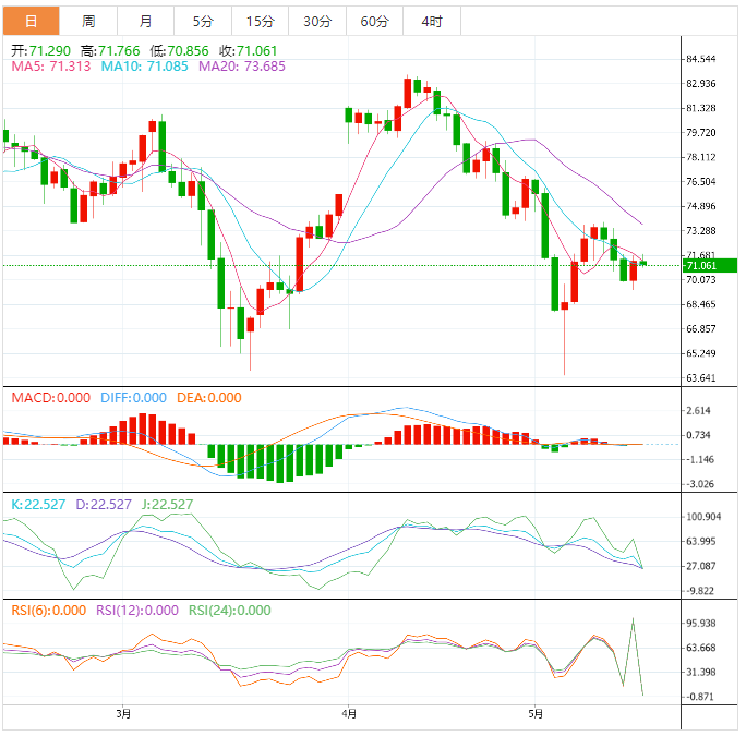 美原油窄幅震荡,目前交投于70.95美元/桶附近,美国宣布为紧急战略石油储备回购石油的消息提供了支持,加拿大野火肆虐也加剧了供应担忧,市场对美国将达成债务上限协议的预期也有所升温,这给油价提供支撑。不过,美联储官员讲话偏向鹰派,打压年内降息预期,美元指数相对强势,仍需提防油价重回跌势的风险。