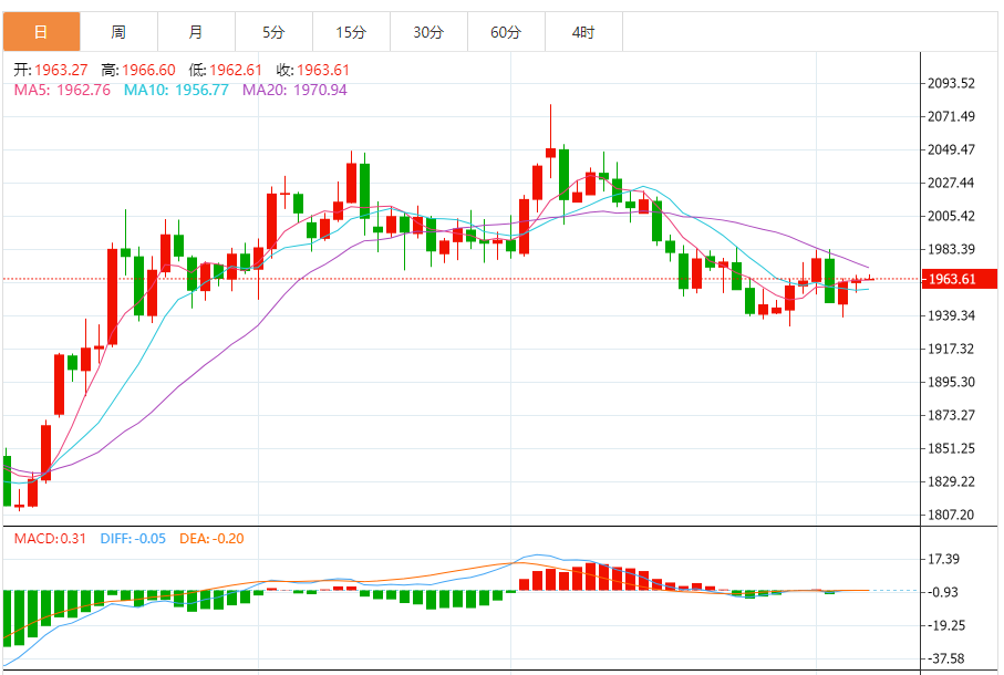 周三(6月7日),黄金期货基本持稳,目前期金位于1980美元/盎司附近。