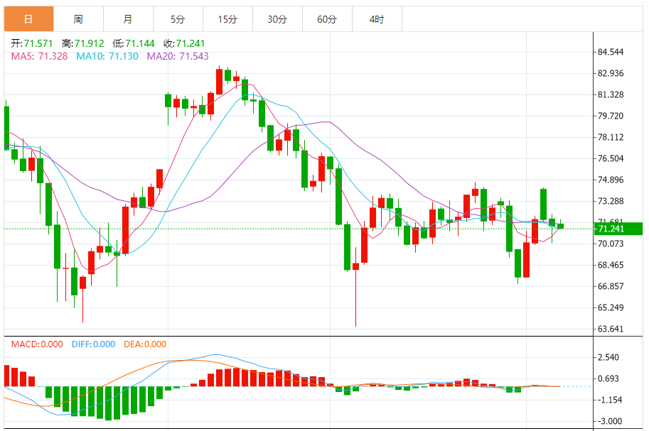 3)原油技术面分析:布伦特原油期货和WTI原油期货虽然从昨日的74.73美元/桶和70.13美元/桶的低点有所反弹,但仍处于下跌状态。前景喜忧参半。72-79美元/桶(布油价格)和67-75美元/桶(WTI油价)的区间可能会持续一段时间。