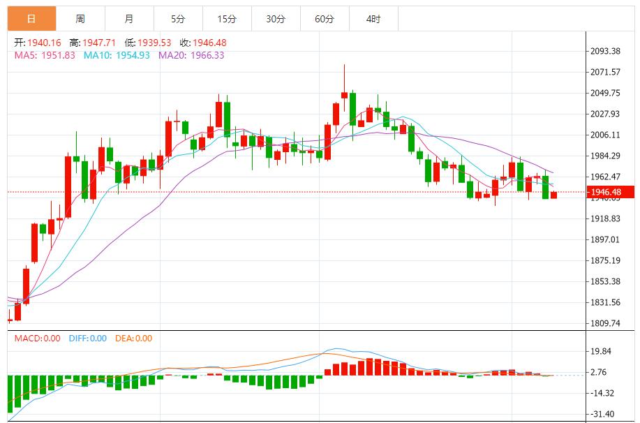 周四(6月8日),黄金期货在昨日大跌之后基本持稳,目前期金位于1960美元/盎司附近。黄金期货已跌向短期支撑位1950美元/盎司。需要观察期金究竟是成功反弹,还是跌破这一支撑。
