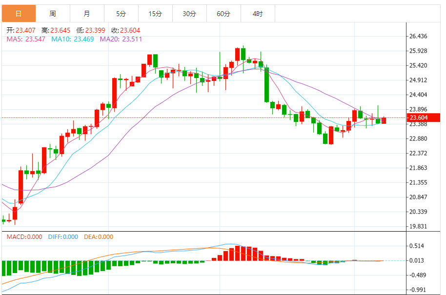 2)银技术面分析:白银期货昨日测试24.17美元/盎司的高点,之后出现回落。在接下来的几个交易日,白银期货可能会在24.50-23.00美元/盎司区间内盘整。