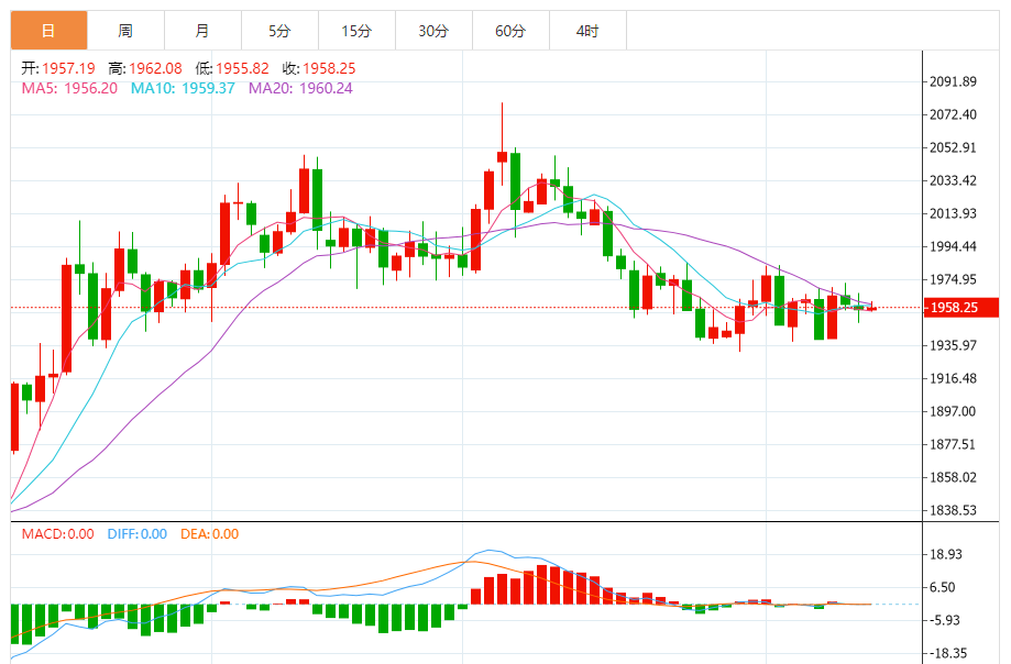 1)金技术面分析,黄金期货依然低迷,但已成功守在1960-1950美元/盎司的支撑位上方。黄金期货可能会在一段时间内继续在2000-1950美元/盎司区间内交易。只要高于1950美元/盎司,那么倾向为看涨,期金有望向上突破并涨向2020美元/盎司。