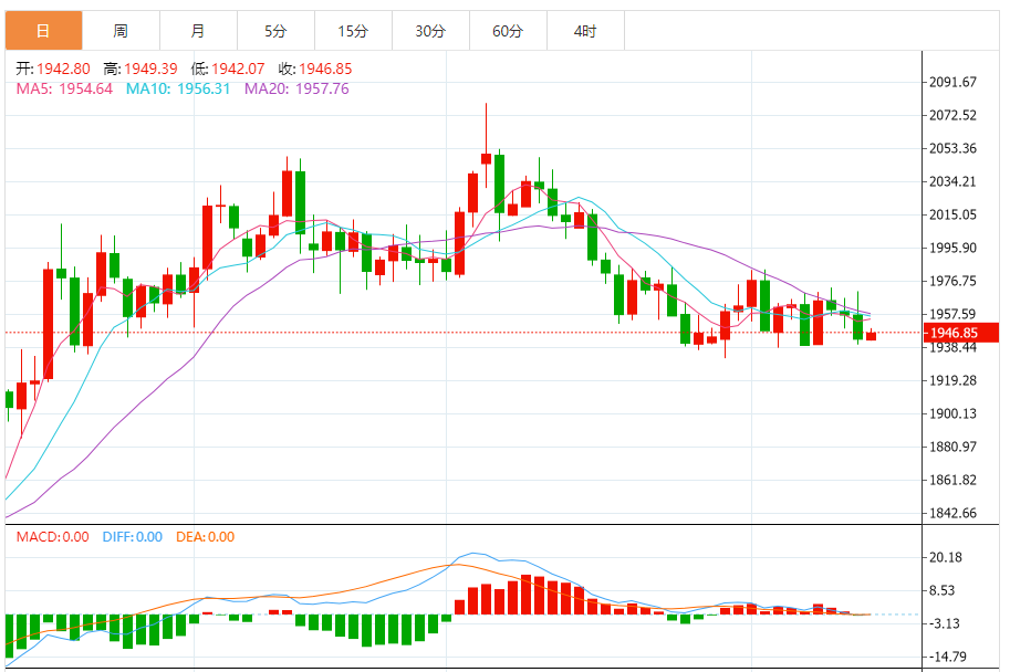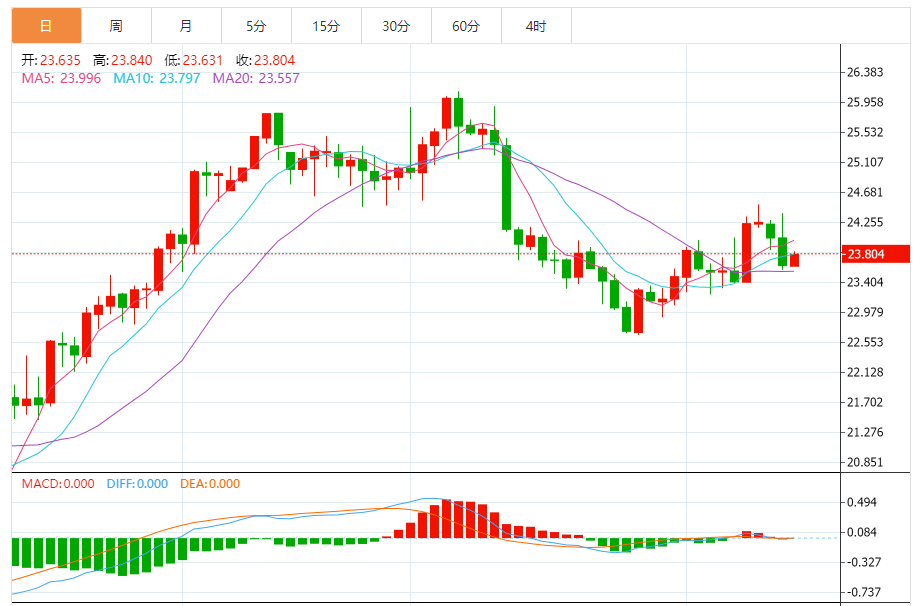 2)银技术面分析:白银期货周二在未能突破24.50美元/盎司后,大幅跌破24美元/盎司。短期支撑位见于23.50美元/盎司。假如守住上述支撑,那么白银期货有可能回升至24.50美元/盎司,甚至更高至25美元/盎司。
