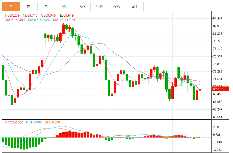3)原油技术面分析:布伦特原油期货维持在72美元/桶以上,并如预期般向75美元/桶方向飙升。这使得布油价格保持在72-79美元/桶的区间内。在此区间内,布油价格有可能测试阻力位75.50-77美元/桶。