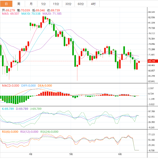 美原油延续隔夜反弹走势,目前交投于69.67美元/桶附近,市场强化了美联储本周暂停加息的预期,美股延续涨势刷新逾一年高点,给油价提供支撑,美国迎来夏季出行高峰期,航空旅行接近或高于2019年的水平;OPEC的数据显示,沙特最新的石油减产将在下个月大幅收紧全球市场。虽然API原油库存意外增加,令油价涨幅受限,但隔夜油价的反弹已经极大的削弱了短线下行风险。