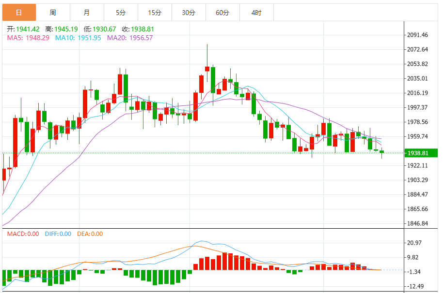 1)金技术面分析,黄金期货跌破1950-2000美元/盎司区间的下端。如果这一突破持续下去,则期金有可能跌至1935-1930美元/盎司,甚至更低至1900美元/盎司。