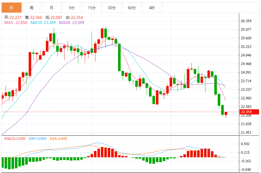 2)银技术面分析:白银期货如预期般跌向22美元/盎司。如果未能从22美元/盎司反弹,这可能拖累白银期货跌向关键支撑位21.50美元/盎司,然后跌势料暂停。