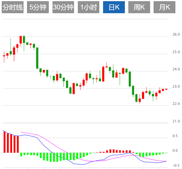 今日预期交易区间在22.50支撑和23.30阻力之间。