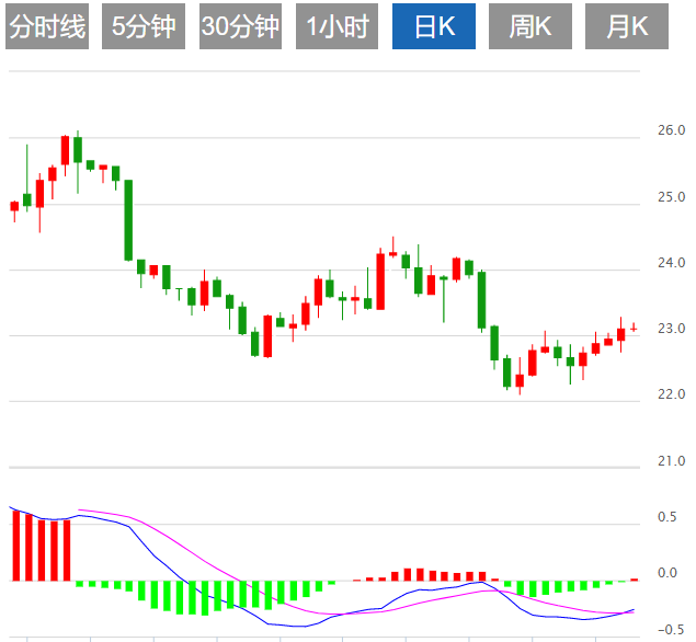 今日预期交易区间在22.85支撑和23.70阻力之间。