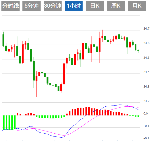 今日预期交易区间在24.10支撑和24.80阻力之间。