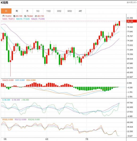 星期四(七月二十七日)亚欧时段,美原油震荡上涨。尽管美联储此前已加息25个基点,这或会减缓经济增长并减少石油需求,以及美国原油库存下降低于预期,使油价保持在80大关的压力之下,但对供应紧缩和中国需求强劲的预期仍为多头提供了信心。