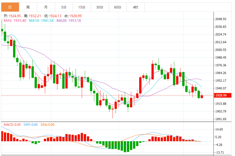 1)金技术面分析,黄金期货周二继续下跌。期金可能测试1940-1930美元/盎司,然后走势料反转。