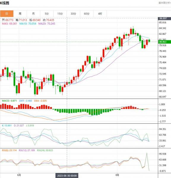 星期一(八月二十一日)亚洲时段,美原油微涨,一度达到四个交易日新高至82.15美元/桶。不过,对亚洲主要国家经济前景和全球需求增长的担忧依然存在,仍需警惕油价进一步回落的风险。