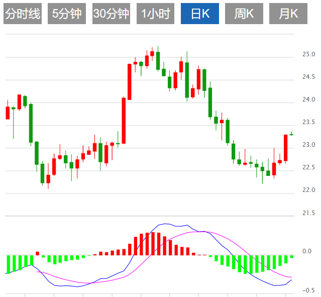 今日预期交易区间在23.00支撑和23.70阻力之间。