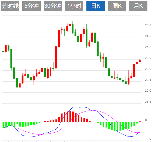 今日预期交易区间在23.20支撑和23.80阻力之间。