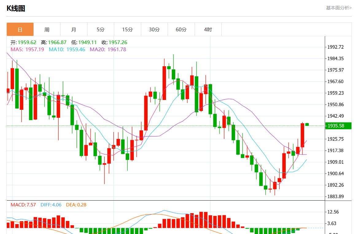 周三欧市盘中,现货黄金报1936.35,跌幅0.04%。