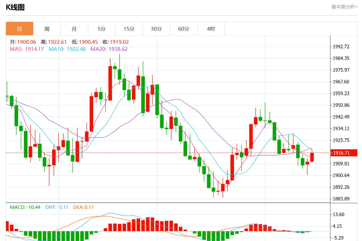 周五欧市盘中,现货黄金报1917.42,涨幅0.37%。