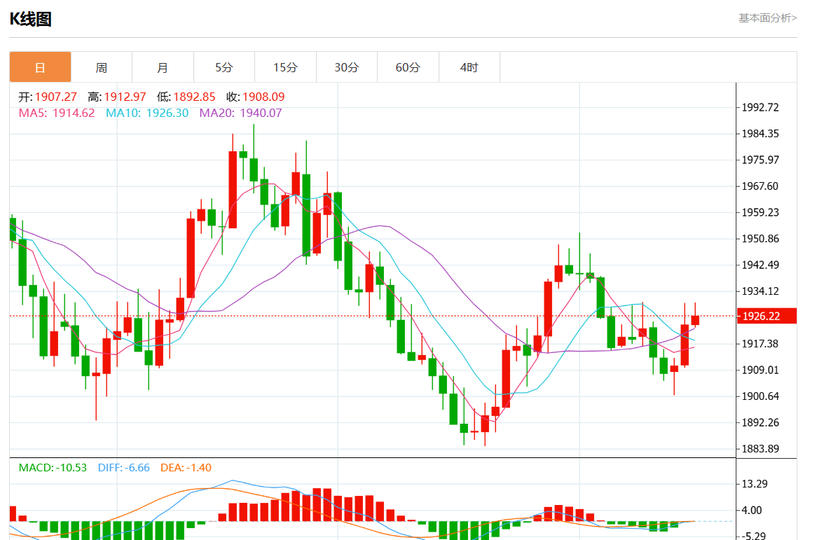 周一欧市盘中,现货黄金报1925.88,涨幅0.13%。