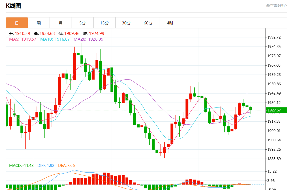 周四欧市盘中,现货黄金报1927.01,跌幅0.17%。